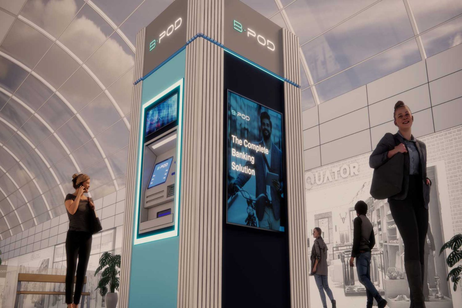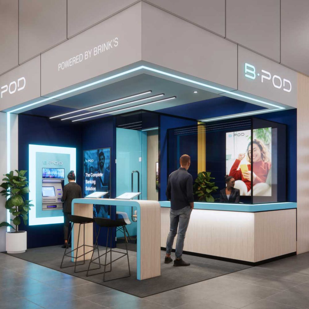 B-POD is a unique banking solution supplied, installed, and fully managed by PAI. It is a bank-branded (white-labeled) small footprint relocatable structure, with the functionality of a traditional bank branch, positioned in a low-cost retail space.