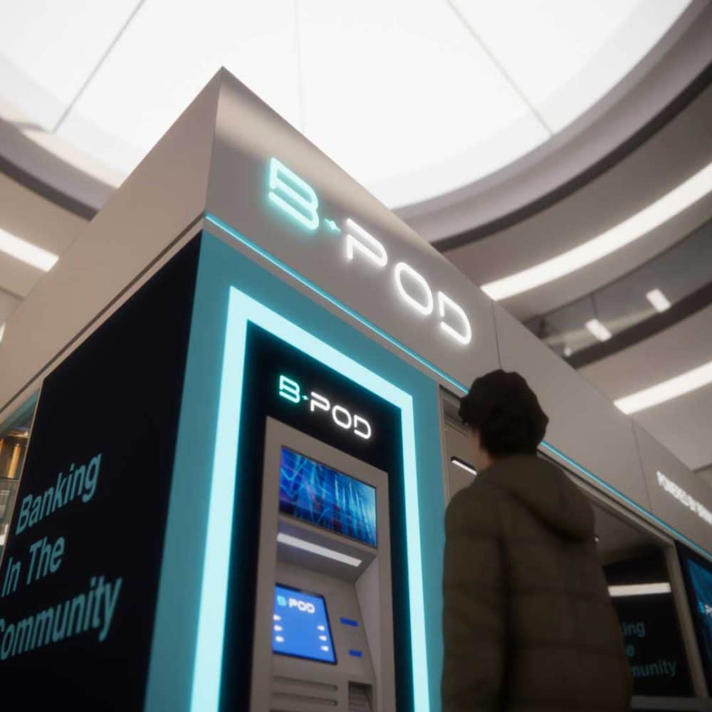 B-POD is a customizable, flexible solution that enhances customer engagement, optimizes your bank’s market presence, and streamlines your operations – delivering significant cost savings. Our innovative banking pods are the ideal solution for financial institutions facing rising costs and declining branch networks, ensuring access to cash and banking services for all.